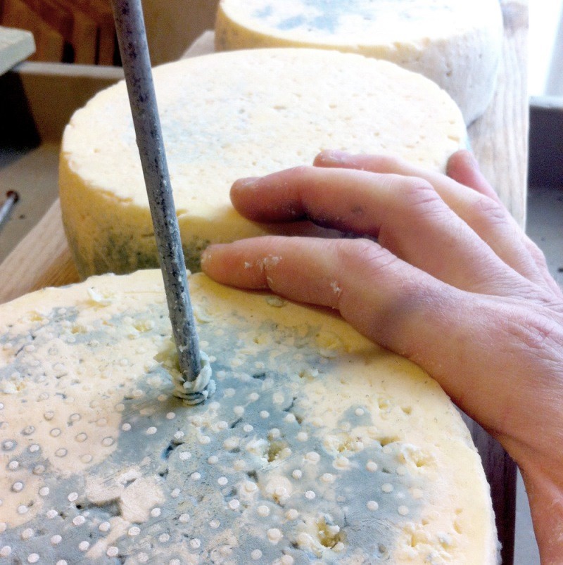 Le vieillissement se produit, bien sûr, non pas dans des grottes, mais dans des pièces spécialement équipées avec une température et une humidité constamment maintenues. Pour la moisissure bleue, les têtes de fromage sont percées pour fournir aux champignons suffisamment d'oxygène. La moisissure blanche est "développée" à l'extérieur, ce produit a donc une texture plus douce et visqueuse et un goût crémeux délicat.