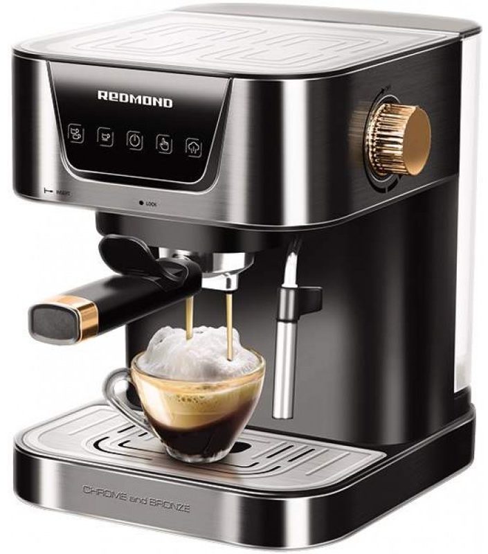 Encore un digne modèle de cafetière sensorielle de chez REDMOND. Le réservoir d'eau contient 1,5 litre, assez pour faire 12 tasses d'Americano. Le niveau de pression est standard, 15 bars. Le volume des portions de boissons peut être modifié à votre discrétion et le réglage défini peut être enregistré dans la mémoire de l'appareil, ce qui élimine le besoin de reconfigurer chaque fois que vous accédez à la cafetière. La conception du modèle vous permet de préparer du latte et du cappuccino, à l'aide d'une buse de cappuccinateur, une douce mousse de lait est fouettée. De plus, "REDMOND RCM-M1513" est équipé d'une table pour réchauffer les tasses et offre également la possibilité de préparer deux portions d'une boisson en même temps. Le kit comprend un livre de recettes, a recueilli une variété de recettes pour une boisson au café.Le prix moyen du modèle est de 10 699 roubles.