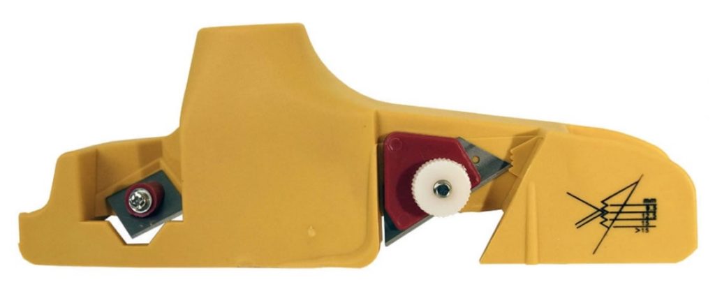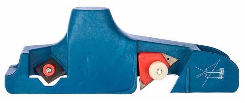 Cette raboteuse est également utilisée pour tailler les bords des cloisons sèches et chanfreiner, qui peuvent avoir un angle de biseau de 45 degrés. Les lames de cet outil sont réalisées sous la forme d'un trapèze, pouvant être déplacé par l'utilisateur afin d'atteindre la profondeur de traitement requise.