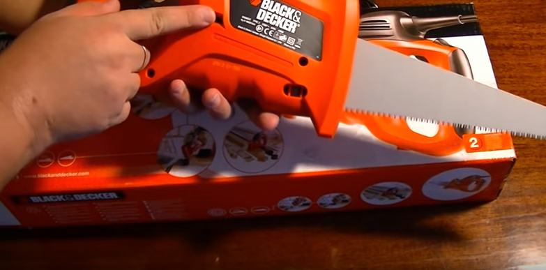Scie électrique puissante avec un schéma simplifié de remplacement de la lame de scie. Fonctionne tout aussi efficacement sur l'ardoise de coupe, les tuiles métalliques, le béton cellulaire, le bois, le métal, les branches, les tuyaux.