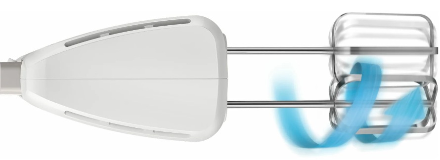 Il y a quelques décennies, 2 vitesses étaient le rêve ultime. Aujourd'hui on peut parler de 4,5 et jusqu'à 7 vitesses, avec le mode turbo obligatoire. Plus la vitesse est élevée, plus la période de temps pendant laquelle le moteur peut tourner sans surchauffe, et donc sans risque de panne, est courte. Omelettes, mousses, crèmes, compositions de crêpes, pâtes et viandes hachées, tout l'éventail des possibilités dépend des différents réglages de vitesse et accessoires. Un démarrage en douceur avec une augmentation progressive de la vitesse est devenu une nouveauté. La densité de la consistance augmente au fur et à mesure qu'elle est fouettée ou malaxée, il est donc important de maintenir la modération dans le milieu liquide initial de la composition et d'augmenter progressivement l'effort à mesure que la viscosité augmente.