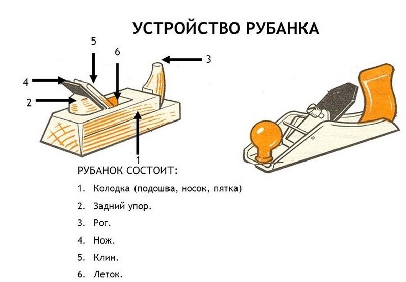 Le modèle traditionnel de l'outil est exécuté dans un coffret en bois, dans lequel la lame de coupe est solidement fixée. En bas, il y a une semelle avec une fente à travers laquelle passe la lame de coupe. Dans le but d'un travail confortable, une soi-disant corne (poignée) est installée à l'avant de la raboteuse, en raison de la pression sur laquelle la base inférieure est fermement attachée à la surface à traiter, et en même temps la direction nécessaire pour le couteau est donné. Tout au long de l'histoire de son utilisation, la raboteuse, ainsi que d'autres outils de menuiserie, a fait l'objet de nombreuses améliorations. La caisse en bois a ensuite commencé à être de plus en plus remplacée par une caisse en métal (pour une plus grande résistance) ou en plastique (pour réduire le poids total). De plus, le rabotage manuel avec application d'un effort musculaire de la part de l'opérateur a été supplanté par l'utilisation de modèles électriques automatiques. Ainsi, les parties principales de l'outil en question comprendront toujours :