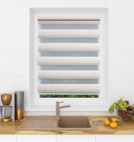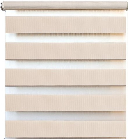 - Zebra (jour-nuit) - conception avec la possibilité de contrôler la lumière. Il s'agit d'une toile double face composée chacune de bandes alternées : transparentes et densément assombries.