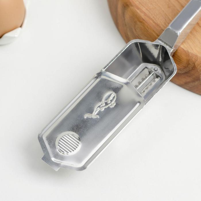 L'outil est en acier inoxydable alimentaire avec le polissage ultérieur d'une surface. La partie sur laquelle se trouvent 4 rangées de clous de girofle de hauteurs différentes occupe une surface de 2,8 x 4,5 cm, les 12 cm suivants sont occupés par l'anse. La connexion de la partie travaillante avec la poignée est très solide, ce qui confère au produit une longue durée de vie.