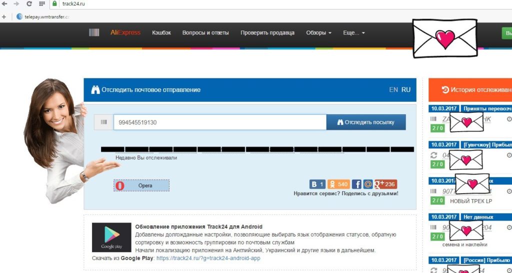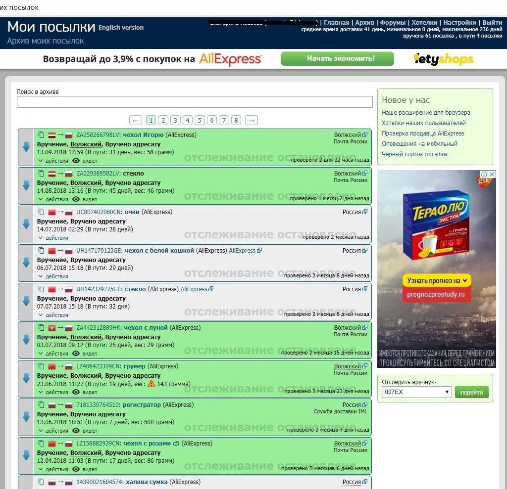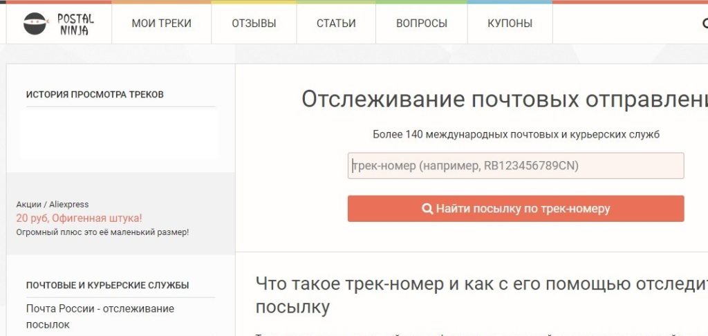 Le site de suivi est souvent utilisé lors de la commande de marchandises sur le site Aliexpress, car il génère automatiquement un historique des achats après avoir passé une commande.