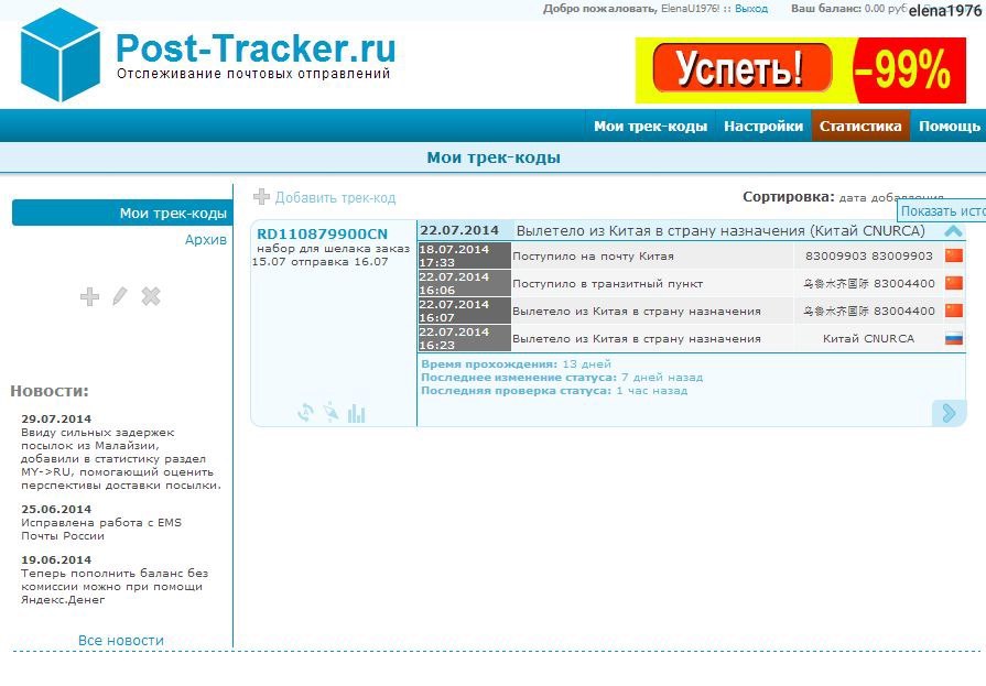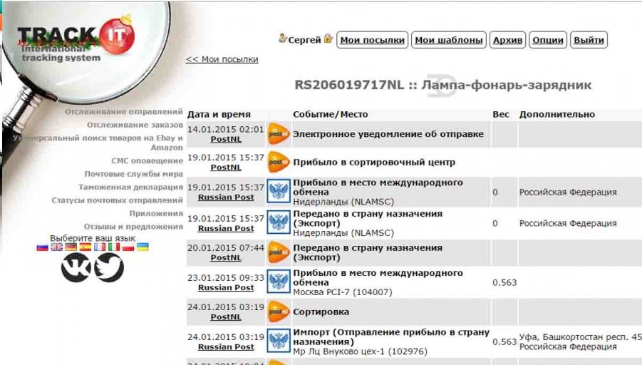 Ce site interagit avec presque tous les bureaux de poste du monde. Toutes les informations nécessaires sont fournies sous forme de tableau. Si vous souhaitez obtenir un résumé plus précis, il vous suffit de cliquer sur la ligne et de voir les détails sur le déplacement de l'achat. Après vous être inscrit sur le site, vous pouvez recevoir des informations sur l'expédition et la date limite de réception de la marchandise par e-mail.
