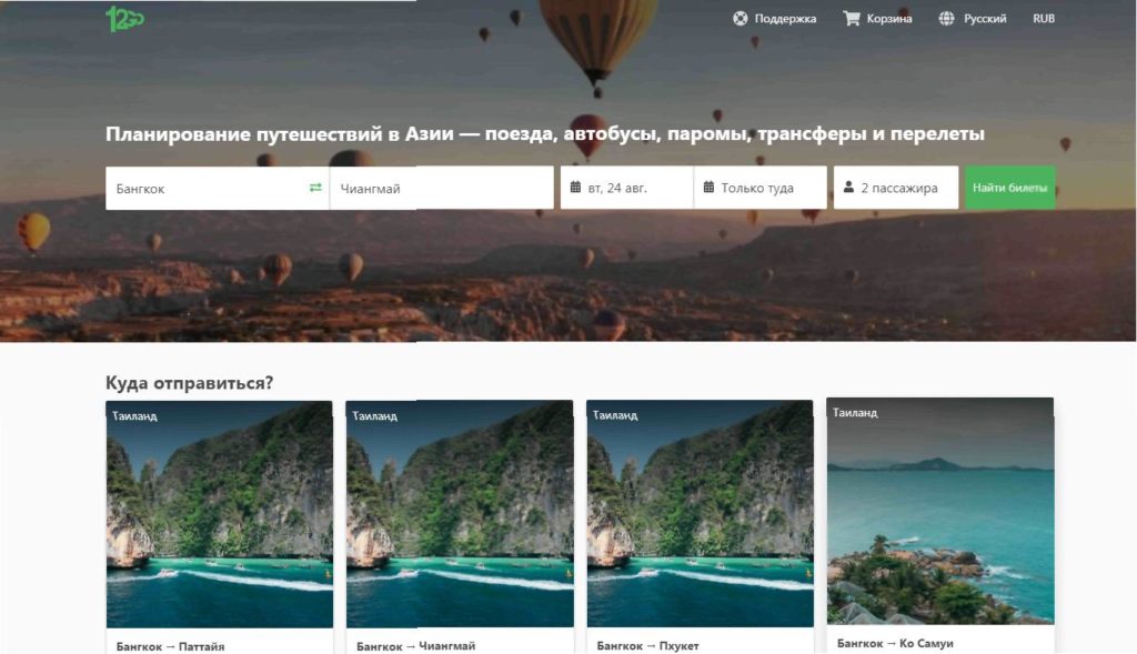 Avec ce service, vous pouvez réserver des places dans un train, un avion ou un ferry en Asie du Sud-Est. Les circuits dans des pays tels que la Thaïlande, l'Inde, le Vietnam et Singapour sont toujours populaires parmi les touristes.
