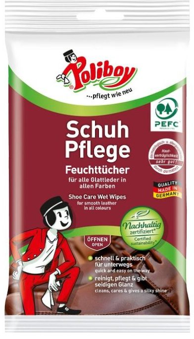 Lingettes universelles pour chaussures et autres surfaces, élimine rapidement et efficacement la saleté fraîche de tout type. Le produit peut être commandé en ligne dans la boutique en ligne de n'importe quel marché. Dans le cadre des extraits naturels de plantes, ne provoquent pas de réactions allergiques. Durée de conservation : 3 ans. Prix moyen : 220 roubles.