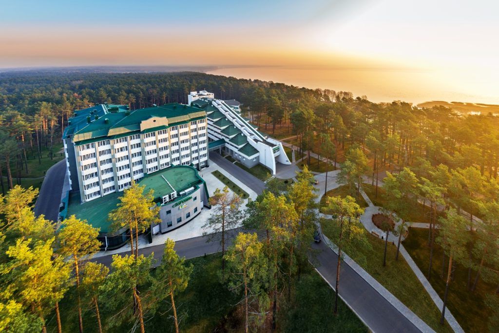 Le sanatorium est situé au cœur du parc national Narochinsky, dans le quartier de Medel. Il est entouré d'une pinède odorante, intacte par la civilisation. A proximité se trouvent deux lacs Naroch et Beloe, chacun d'eux a un paysage unique de beauté. Ici, la nature est intacte et strictement protégée de la pollution.