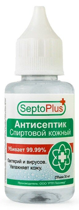Antiseptique cutané de taille très compacte, le volume du flacon n'est que de 30 ml. Dans la composition, en plus de l'alcool isopropylique, de la glycérine et de l'eau, du peroxyde d'hydrogène est présent. Il remplit parfaitement son objectif principal, grâce au bouchon compte-gouttes, il est dosé de manière pratique.