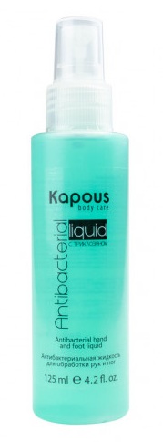 Un liquide universel qui peut être utilisé pour traiter non seulement les mains, mais aussi les jambes. Il est réparti sur la peau par pulvérisation (il faut quelques secondes pour sécher complètement). Le produit a un effet antibactérien, ne nécessite pas de rinçage ultérieur à l'eau, n'affecte pas négativement la peau, neutralise parfaitement les bactéries pathogènes.