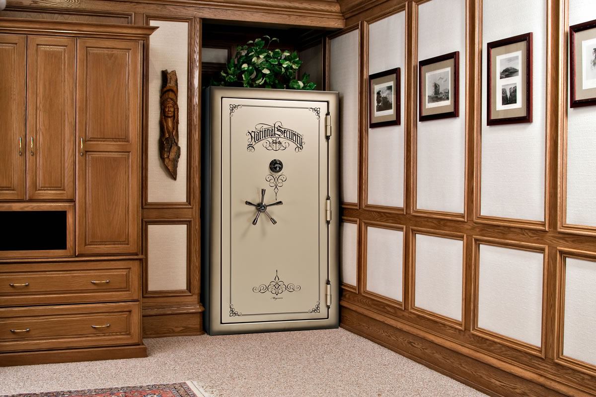 Coffre-fort pour armes à feu a une forme allongée, conçue pour stocker des armes à feu ou des armes blanches à la maison. À l'intérieur, il y a des logements pour les fusils, un compartiment pour les munitions.Des coffres-forts spéciaux pour les chasseurs sont produits qui répondent aux exigences de dimensions.