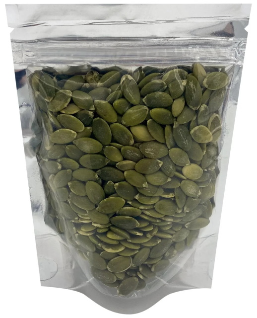 Un produit utile à haute teneur en fer, vitamines, zinc et autres macro-microéléments. Noyaux crus pelés dans une coquille avec une teinte verdâtre. Ils ont une texture huileuse et un goût sucré. Emballé dans un sac artisanal avec une fermeture éclair. À la première ouverture, déchirez un coin le long d'une petite rainure sur l'emballage. Les informations utiles se trouvent au verso. Le goût est agréable, sucré, avec des nuances de noisette.