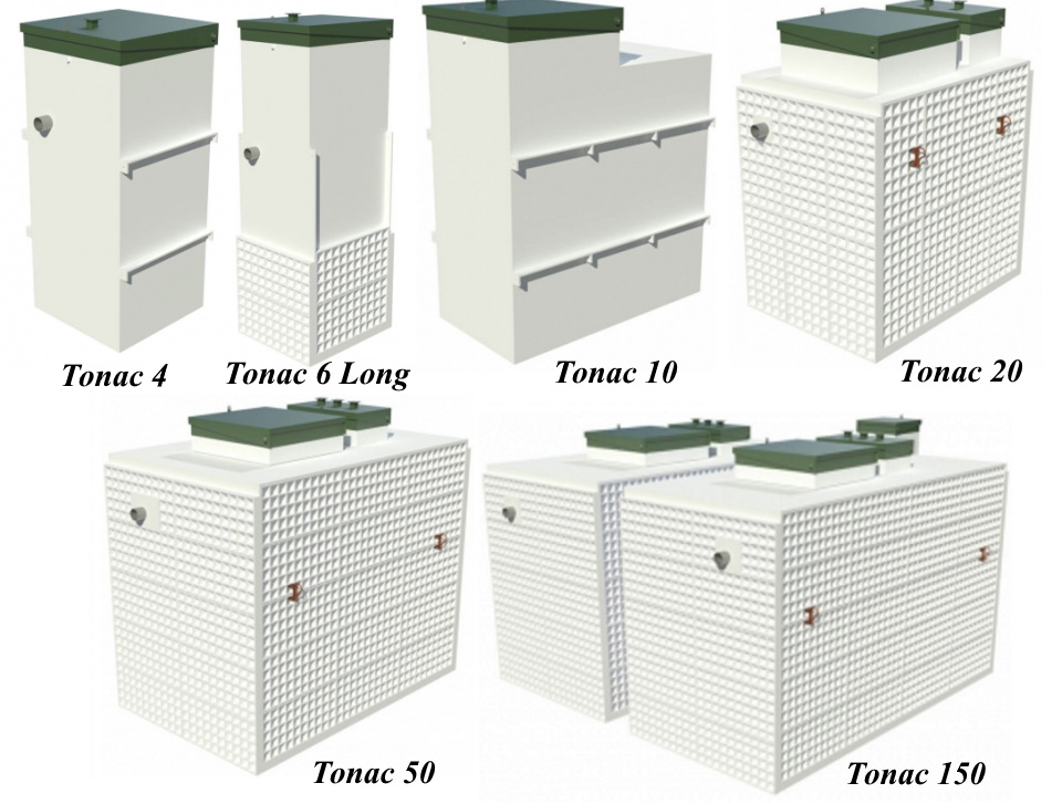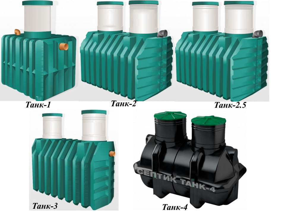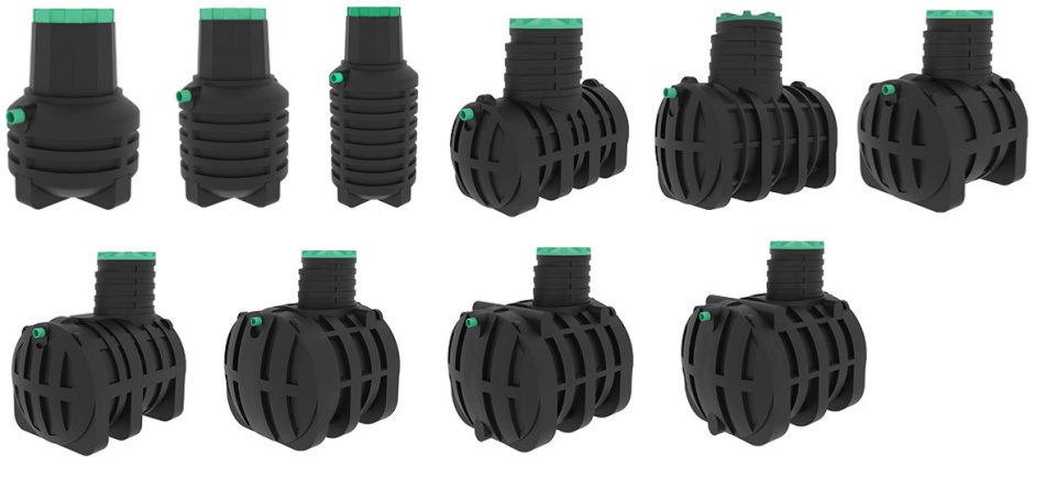 Des dizaines de modèles d'équipements de nettoyage en profondeur pour les maisons privées, les cafés, les chalets, ainsi que d'autres bâtiments qui n'ont pas la capacité de se connecter à un égout central. Sont délivrés sous la forme d'un réservoir en polypropylène soudé sous la forme d'un parallélépipède. D'en haut, le col est fermé par une couverture verte dépassant de 20 cm de la surface du sol et en harmonie avec la végétation.