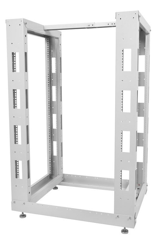 Les cadres ont une base commune avec des pieds pour le montage au sol et une barre en haut pour la rigidité. Le support d'équipement est inséré dans les profils perforés. Le service est disponible dans toutes les directions.