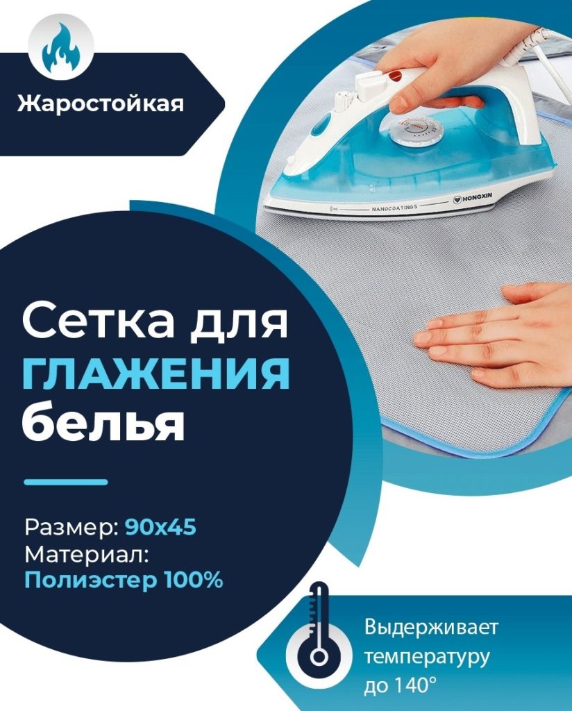 La grille résistante à la chaleur protège le fer et les objets de la combustion, est capable de résister à toutes les conditions de température, à tout type de fer. Il a une large fonctionnalité, l'effet "anti-brillance", restaure la structure du tissu. Il est facile de se déplacer pendant le travail. Comprend 2 pièces. Coût : 456 roubles.