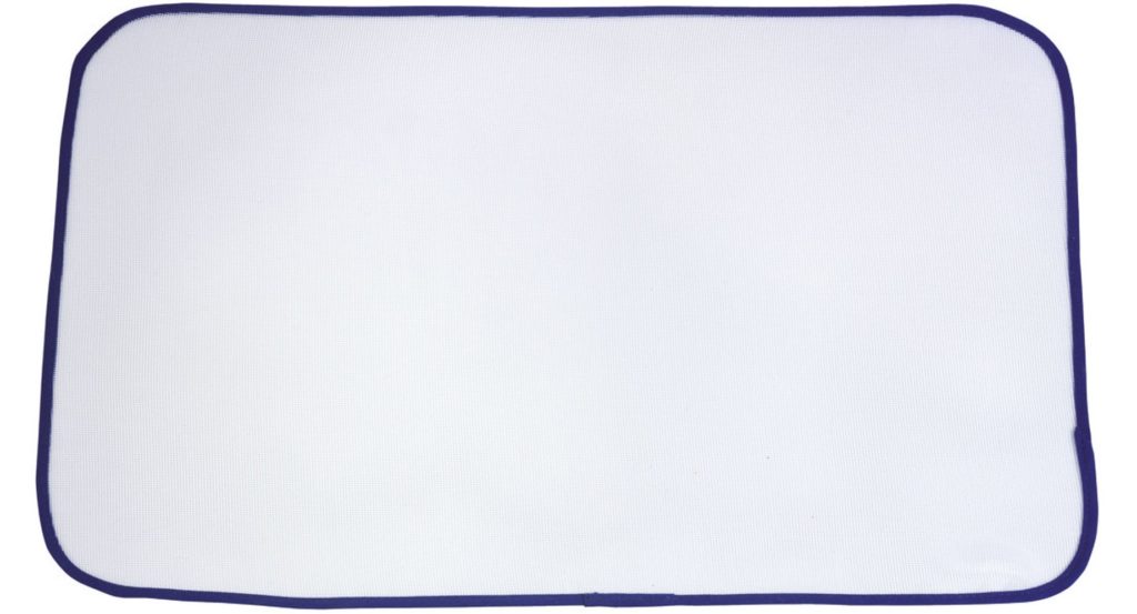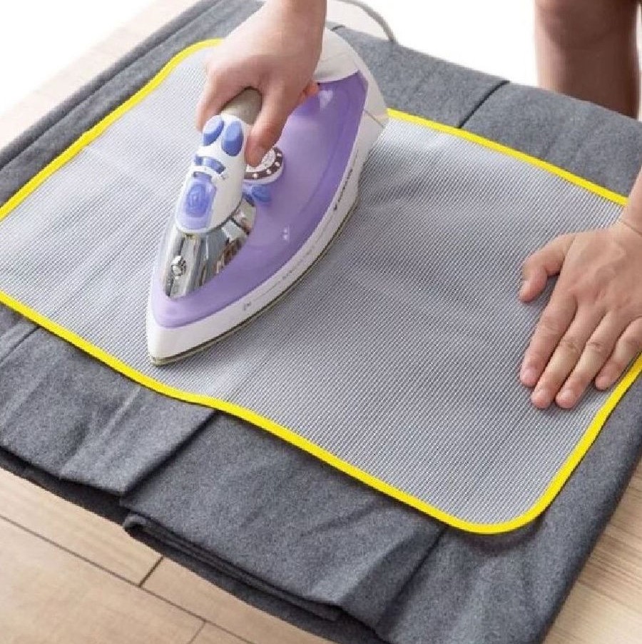 La maille est facile d'entretien, peut être lavée à la main ou en machine à laver, sèche rapidement, ne perd pas ses propriétés. Protège le tissu de l'apparition de brillance lors du repassage. Répartit uniformément la chaleur du fer, ne déforme pas les choses. Dimensions : 90x45 cm Prix moyen : 162 roubles.