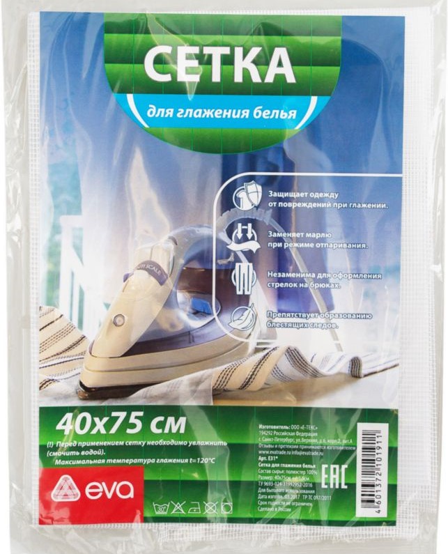 Maille polyester avec passepoil. Résiste aux hautes températures, s'utilise pour tout type de tissu, y compris délicat. Dimensions : 60x40 cm Livré dans un solide emballage transparent. Pays d'origine : Russie. Coût moyen : 312 roubles.