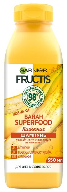 C'est un shampooing nourrissant conçu pour les cheveux très secs. Son effet est fourni par l'huile de noix de coco dans la composition, ainsi que la présence d'acide salicylique, de vitamines E et C. Le nom du produit n'est pas non plus accidentel, le jus de banane est présent parmi les ingrédients.