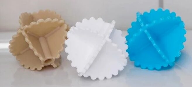 Une poudre supplémentaire n'est pas nécessaire lors de l'utilisation de tourmaline, des koloboks de lavage naturels. Magnétique, le caoutchouc réduit la quantité de produit, ne nécessite pas l'ajout d'un conditionneur.