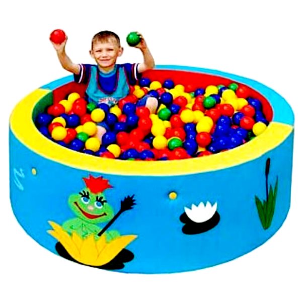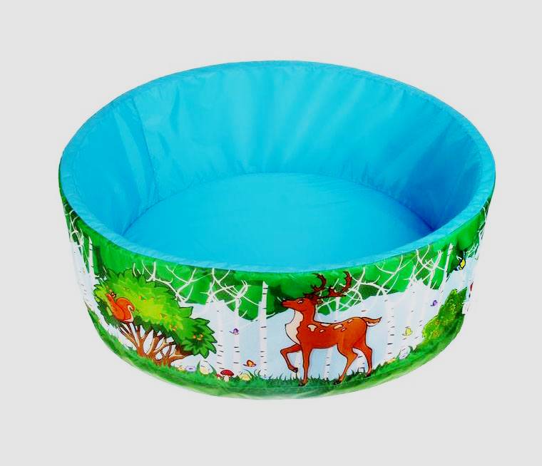 La forme de la structure est ronde, dont le diamètre est de 1,6 m.Avec une épaisseur de côté de 10 cm, leur hauteur atteint 0,5 m, ce qui est suffisant pour les enfants de 1 à 7 ans. Produit en Russie. Seuls des matériaux fiables et respectueux de l'environnement sont utilisés pour la fabrication. Le design lumineux est responsable de l'intérêt du bébé. Il y a des balles dans le kit, mais elles ne suffisent pas pour les jeux actifs. Si nécessaire, le récipient peut être rempli d'eau.