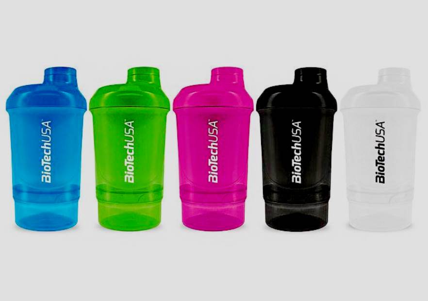 Les sportifs professionnels optent pour une configuration plus « fantaisie ». Ces dispositifs, en plus des composants principaux, sont complétés par des conteneurs pour les composants en vrac et les comprimés. L'appareil est utilisé non seulement pour transporter de la nutrition sportive, mais également pour mélanger des formulations et faire des cocktails.