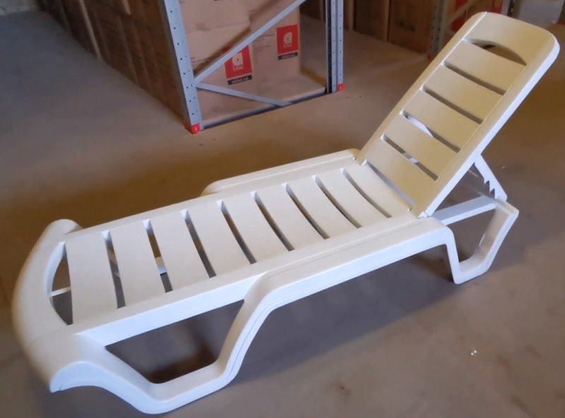 La base est très résistante, car elle est en aluminium avec des inserts en polymère thermoplastique. Pour le siège avec appui-tête, le fabricant a utilisé du polyester bleu.Le matériau sèche rapidement, laisse parfaitement passer l'air et en même temps n'absorbe pas l'humidité. Aussi, n'ayez pas peur de laisser des traces de crème solaire et de rayonnement ultraviolet. Vous pouvez utiliser de l'eau savonneuse pour le nettoyage. En moyenne, le prix d'un produit est de 3430 roubles.