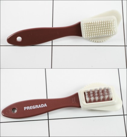 Modèle de brosse fonctionnel et de haute qualité, conçu pour entretenir les objets en velours et en daim. La conception à trois côtés est équipée de plusieurs surfaces de travail, dont l'une est constituée de poils synthétiques et métalliques. Les nervures latérales nettoient parfaitement les coutures et les trépointes de la chaussure, et la troisième a des fibres de caoutchouc qui restituent parfaitement le velours du daim. La poignée a une forme et une taille pratiques, en plastique.