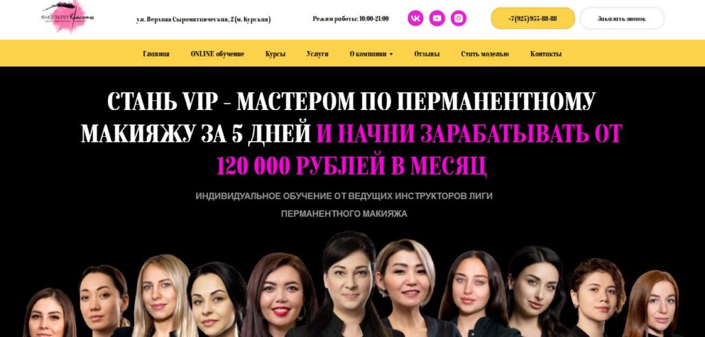 Trois options de formation : VIP, PREMIUM, PLATINUM. Ils diffèrent par le nombre de modèles (8-15), la durée (60-100 heures académiques), les cadeaux (machine PM).