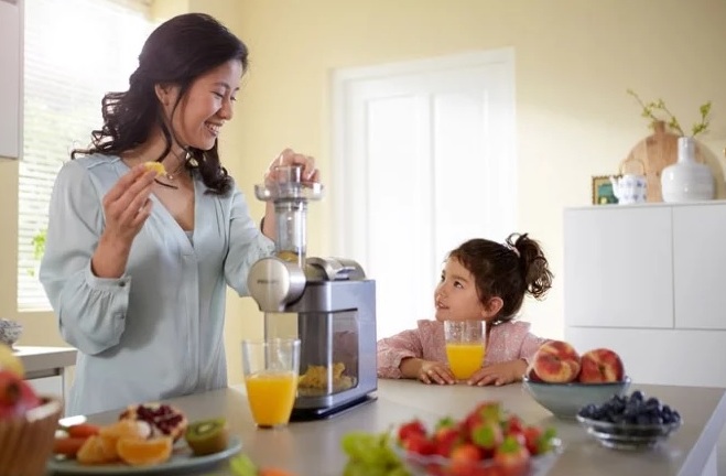 But: pour la maison, pressez le jus des légumes et des fruits, ainsi que des herbes