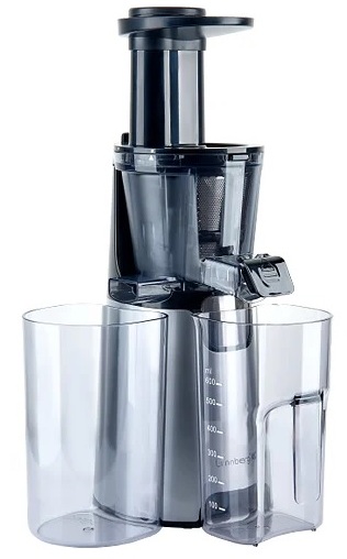 Presse-agrumes avec deux récipients pour trier le jus et le gâteau. Il est équipé de nombreuses buses et d'appareils supplémentaires qui vous permettent de préparer rapidement et confortablement la boisson ou la nourriture nécessaire.