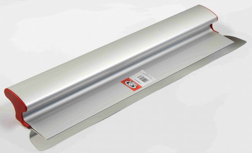 Le modèle est fabriqué à Taïwan. Il est conçu pour les travaux de façade et a une largeur de toile de travail accrue de 45 cm.L'outil est conçu pour appliquer du plâtre ou du mastic sur des surfaces avec un grand plan. La toile de travail est profilée, en acier inoxydable.Il y a un raidisseur en aluminium.