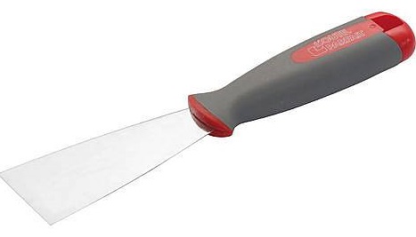 La poignée est dotée d'un revêtement ProGrip exclusif à deux composants qui offre non seulement une prise en main confortable, mais également des propriétés antidérapantes. Le grattoir est utilisé lors de la finition pour le traitement des murs et des plafonds, il peut être utilisé dans des endroits difficiles d'accès. Convient pour le plâtrage des cloisons sèches.La largeur de travail de la lame est de 40 mm, la structure - semi-rigide - assure le lissage des irrégularités, tout en gardant la forme donnée et sans se plier. Parmi les conseils des constructeurs, vous pouvez trouver des recommandations pour acheter un outil uniquement dans des magasins de confiance, car vous pouvez souvent trouver un faux en vente, et non l'original. Il n'est pas recommandé de commander un modèle via Internet, car il est impossible d'identifier un faux à partir d'une photo. Le prix moyen d'un produit est de 300 roubles.