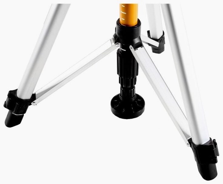 Un appareil de haute qualité en aluminium peut être utilisé à la fois avec un niveau et un théodolite. Hauteur - 1,73 m Un filetage 5/8 est utilisé pour une fixation solide. Étant dans un étui, les dimensions ne seront pas supérieures à un mètre, ce qui simplifie le processus de transport ultérieur. Le poids de l'ensemble est de 3,2 kg. Cependant, cet indicateur vous permet de rendre l'appareil stable.