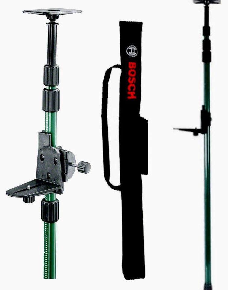 Le support est fabriqué en aluminium durable. Le produit vient de Chine, mais porte le logo Bosch, ce qui indique déjà la haute qualité du produit proposé. Il est souvent utilisé en combinaison avec des unités de construction laser. Peut être installé sur n'importe quel avion. La hauteur minimale d'installation est de 0,97 m. Il convient de noter que l'assemblage est très fiable. Le modèle ne peut pas être classé comme budget, mais il jouit d'une popularité bien méritée parmi les constructeurs. Les pieds sont fixés avec des clips. Le montage sur des surfaces glissantes grâce aux pointes caoutchoutées est possible.L'équipement peut varier, mais le poids de l'outil lui-même est de 3,4 kg.