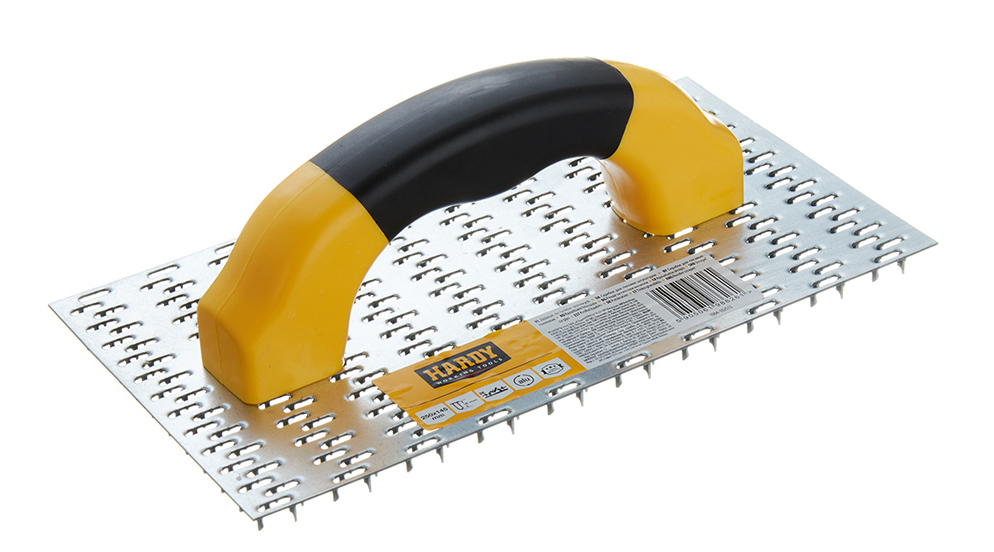 Le modèle HARDY 270×130 d'un fabricant polonais est réalisé sous la forme d'une seule pièce de mousse par coulée. Il est facilement maîtrisé par les débutants. Utilisé pour le meulage et la finition des surfaces en plâtre. Vous pouvez travailler avec l'outil en utilisant des solutions à base de polymères.