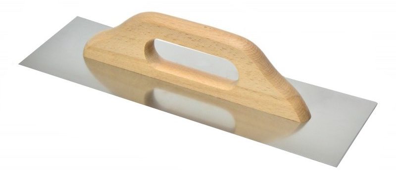 Une truelle à plâtre avec un manche en bois massif et une base en métal est conçue pour l'application et le nivellement préliminaire - elle est utilisée comme truelle. Le dispositif peut être utilisé pour le jointoiement de mélanges de gypse séchés et le broyage de compositions humides à base de gypse. Les bords tranchants et durs de la base en métal coupent facilement les bosses de la composition fraîche, laissant une surface parfaitement lisse.