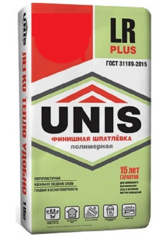 Un bon exemple d'un fabricant local. Il est produit sous la forme d'une composition de sable fin, de plastifiants et de ciment. Il se caractérise par une consommation de matière assez économique. Après application, il présente une excellente adhérence dans les zones sèches et humides. L'application manuelle et mécanisée est possible.