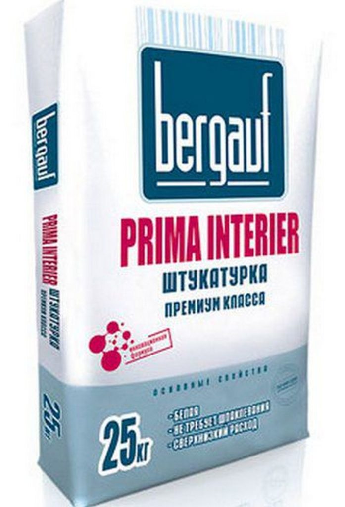 La base de cette composition utilise un type de gypse de très haute qualité, auquel sont ajoutés des inclusions chimiques et minérales. Son principal avantage est la surface brillante résultante de la couche appliquée. Il peut être utilisé non seulement sur des supports standards (béton et brique), mais adhère également parfaitement aux surfaces en plaques de plâtre. Habituellement, même la finition avec du mastic n'est pas nécessaire.
