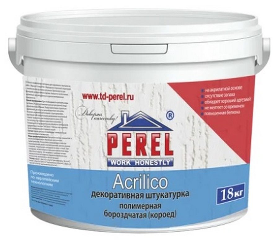 Ce mélange est le moins cher que vous puissiez trouver sur le marché. Malgré cela, il fournit une couche acrylique texturée durable. Fonctionne bien avec les substrats de béton et de gypse. Il a d'excellentes performances en termes de résistance au gel.