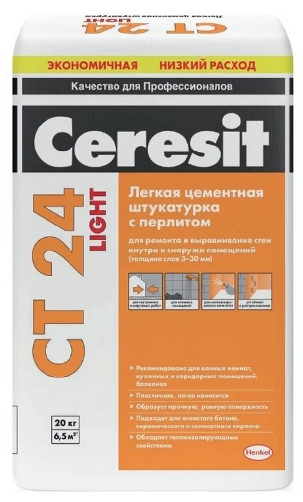 Un mélange chaux-ciment très léger se caractérise par une excellente résistance à l'humidité. Son principal avantage est une très faible consommation, inférieure de 20 à 25% à celle des analogues. Avec son aide, vous pouvez finir des murs inégaux en briques de silicate ou restaurer du béton poreux. Possède une excellente adhérence.