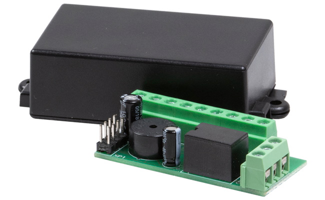 Le boîtier en plastique contient deux cartes, dont l'une a une barre déportée avec des bornes pour les connexions pour simplifier l'installation et réduire le risque d'erreur humaine. Il est possible de réinitialiser les paramètres d'installation.