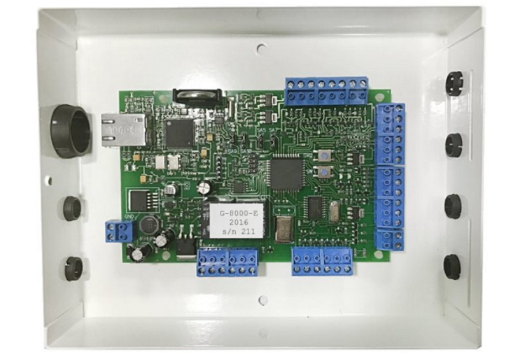 Un développement russe compact pour le contrôle d'entraînements électriques 12/24V et le contrôle d'accès en un point de passage vers des locaux industriels ou administratifs, des entrées de bâtiments. Peut être installé séparément ou à l'intérieur des actionneurs. Fabriqué sur une planche placée dans un boîtier en plastique compact. Indication informative installée et capteur de position de porte.