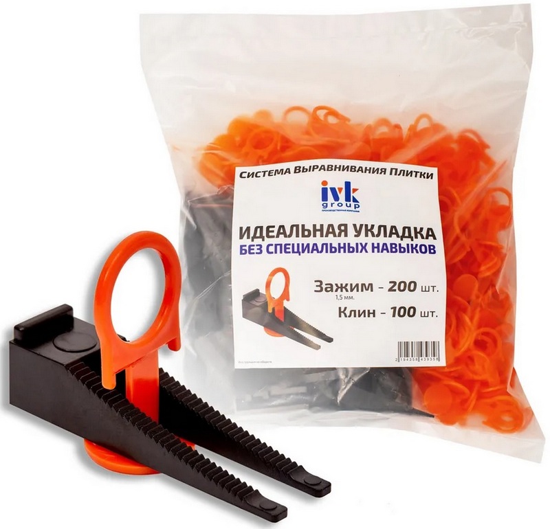 Le produit est un SVP complet et se compose d'un ensemble de cales et de pinces. Grâce à cela, il est facile d'obtenir des coutures parfaites, dont la taille ne dépassera pas 2 millimètres. Avec de tels dispositifs, il sera facile de former des rangées denses de tuiles, dans lesquelles les bords convergeront au ras. Dans le même temps, il est possible de fournir une surface parfaitement plane qui, même après séchage de la colle, ne rétrécira pas. Accélération approximative des travaux de parement - 4 fois, par rapport au rythme habituel. Le coût assez faible permet l'utilisation du kit pour 50 cycles. Le coût recommandé pour les chaînes de magasins est de 830 roubles.