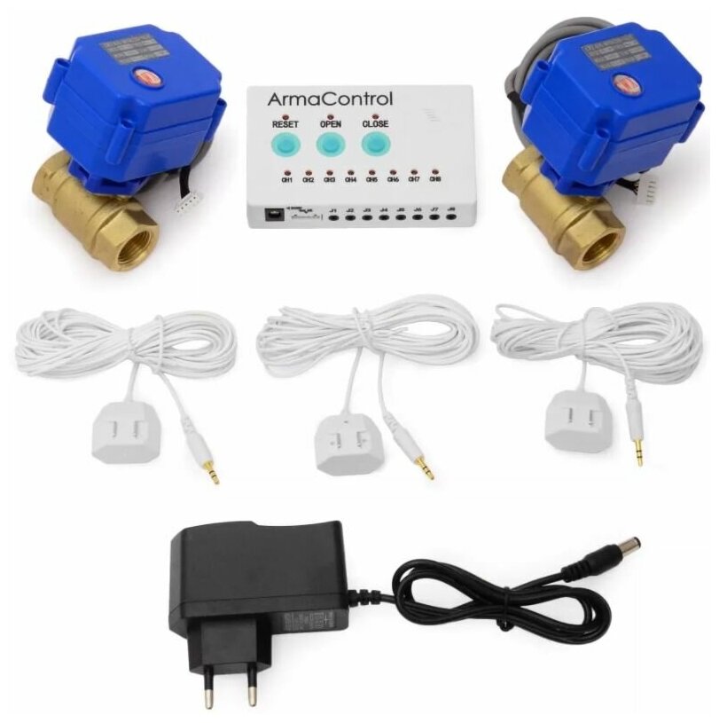 Un dispositif fiable, simple et peu coûteux, où un robinet à tournant sphérique électrique agit comme un actionneur. Le kit est livré avec 2 robinets, ce qui vous permet d'installer le système lorsque l'eau froide et l'eau chaude entrent dans l'unité. Dans la configuration de base, il y a déjà 3 capteurs, et jusqu'à 8 capteurs peuvent être connectés à un maximum de 1 contrôleur, ce qui vous permet de contrôler complètement les lieux de fuites possibles. Le diamètre des tuyaux sur lesquels les éléments du système peuvent être installés est de 1/2″.
