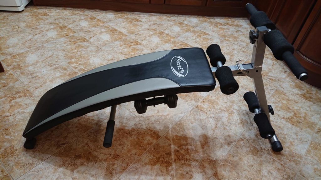 Ce projectile d'un côté tombe au sol. Grâce au réglage, la tête peut être positionnée plus bas et les jambes plus hautes. Cette position renforce bien les muscles de la poitrine. L'entraînement des muscles abdominaux convient également. Cependant, dans ce cas, le projectile doit être équipé de rouleaux spéciaux qui fixent les pieds.