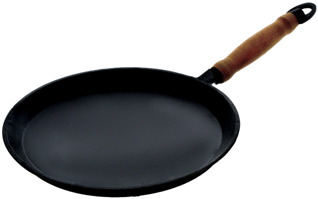 La meilleure option est la fonte. Le réchauffement d'une telle casserole prendra plus de temps que l'aluminium ou l'acier, mais la surface retient la chaleur pendant longtemps et chauffe uniformément la pâte. L'entretien de ces plats est minime - aucun détergent spécial n'est nécessaire. Un autre avantage est que la surface ne craint pas les rayures, vous pouvez donc retourner les crêpes avec une spatule en bois ou en métal.