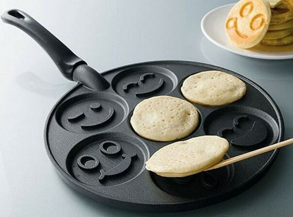 Les plats avec évidements conviennent non seulement aux crêpes et aux beignets, mais également aux œufs brouillés ou aux pizzas en portions. Il existe également des casseroles avec des rainures représentant des animaux amusants ou des émoticônes - les enfants aimeront les crêpes avec de telles empreintes.