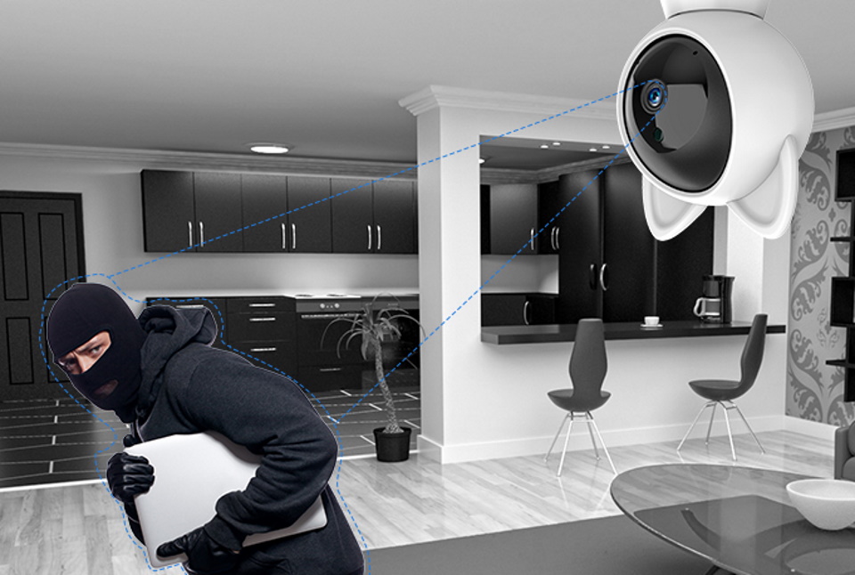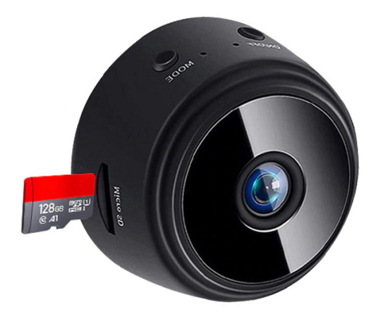 Modèle miniature d'un dispositif de sécurité à usage domestique. L'image est stockée dans le cloud, accès à l'image vidéo à tout moment depuis n'importe où via un smartphone. Capacité mémoire jusqu'à 128 Go. Equipé d'un détecteur de mouvement.