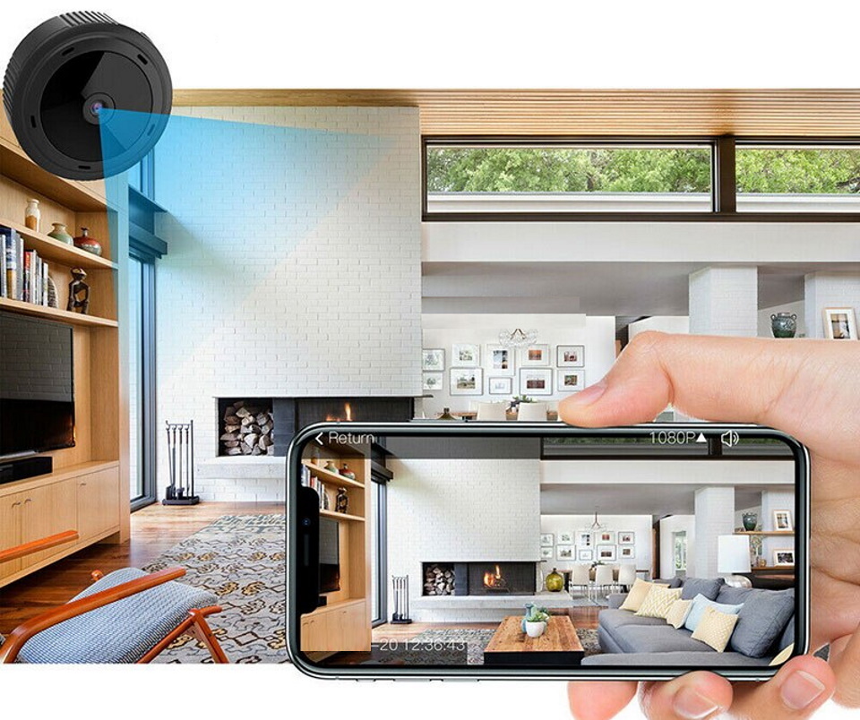 Mini caméra sans fil avec télécommande et système de vision nocturne pour une surveillance discrète. Prend en charge IOS, Android et PC. Microphone intégré. Détecteur de mouvement installé.
